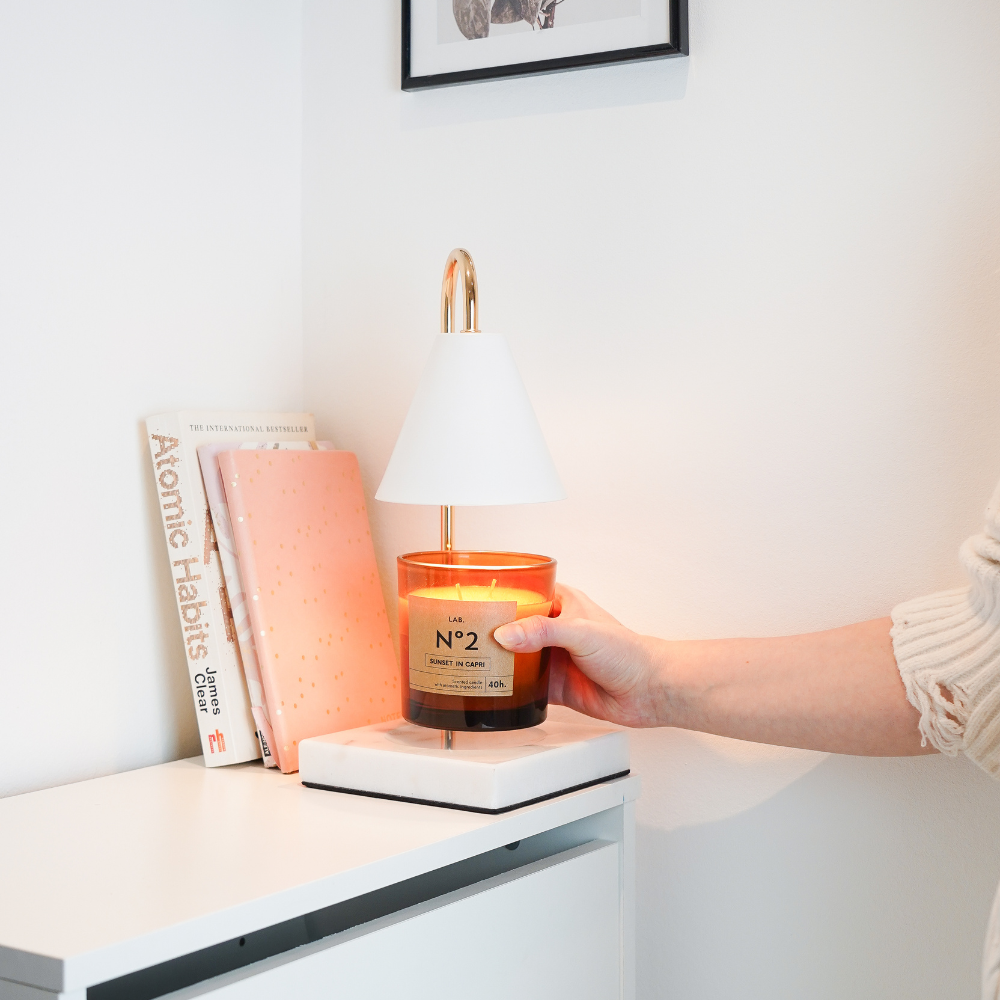 Bring naturens æstetik ind i dit hjem. Lampens elegante marmorbase kombineret med dens beroligende duft skaber en atmosfære af ro og luksus.